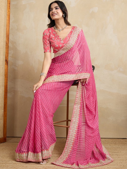 Sequinned Embellished Pure Georgette Bandhani Saree